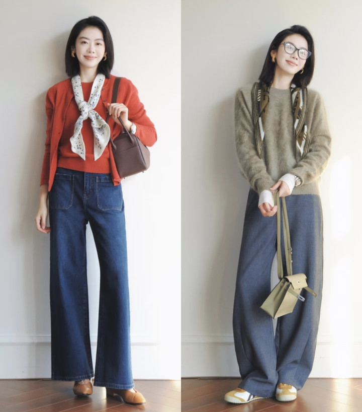 若是不喜欢穿裙子的女性,选择一款柔软的针织毛衣,搭配蓝色牛仔裤,既可以通勤干练,又可以慵懒松弛。